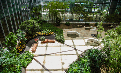 绿化改造之后的中汇广场,所提供的不只是优渥的办公环境,更是一个兼具人文关怀的自然空间。